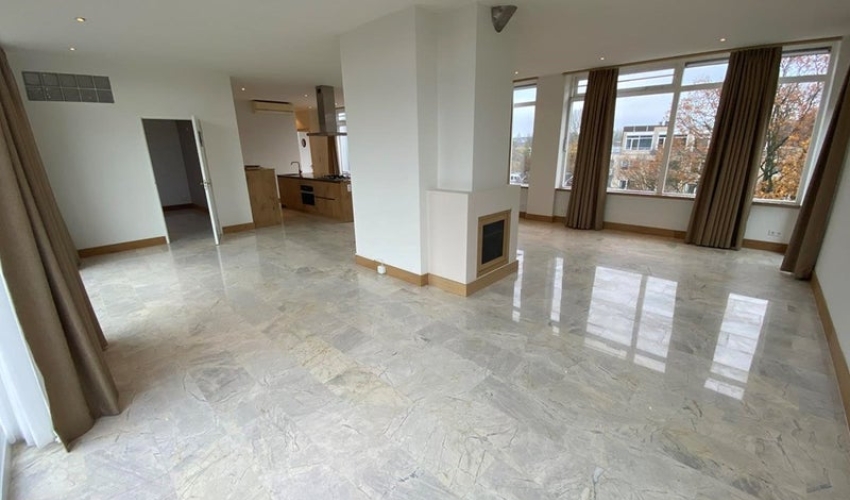 Vloeren: Marmeren tegels Ook in dit huurappartement: