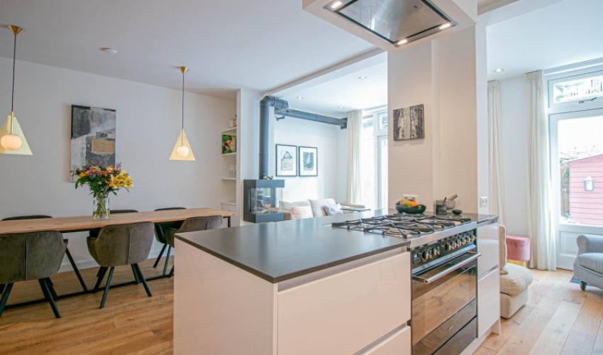 Kleine voortuin met eigen entree op de begane grond. Via het tochtportaal met garderobe en moderne zwart stalen/gazen deur, komt u binnen in de hal met een bergruimte en de meterkast voor extra opslag. Vervolgens komt u in de zeer ruime woonkamer met open keuken. Hier vind u een grote eettafel voor 6 personen en een sfeervoll...... Als je verder klikt kom je bij een nieuwe pagina met uitgebreide informatie over de huurwoning en met de directe contactgegevens van de beheerder