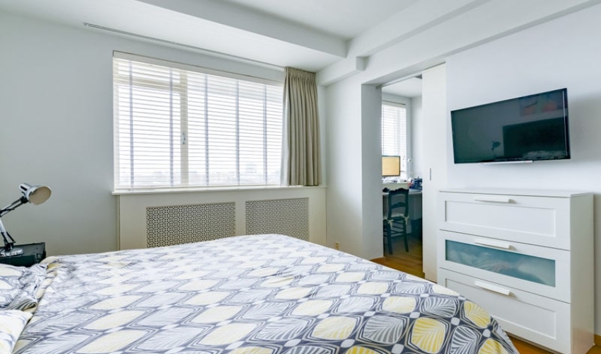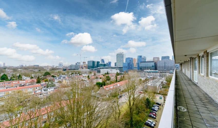 Dit vierkamerappartement is gelegen aan de Parnassusweg 189 en bevindt zich op de negende verdieping van een appartementencomplex met lift. Het appartement beschikt over twee slaapkamers, een balkon en biedt vrij uitzicht over de stad en het water. Rondleiding