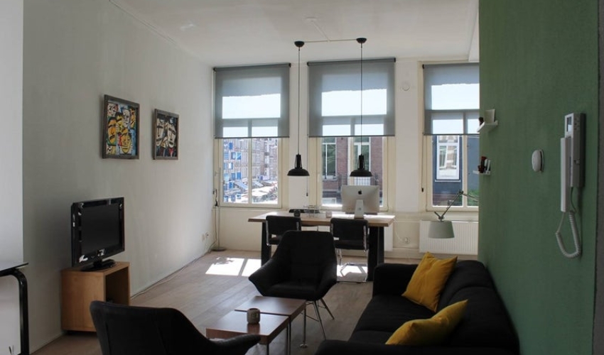 Entree op de eerste verdieping, toilet, leuke en lichte woonkamer met veel ramen met een geweldig uitzicht op de Albert Cuypmarkt. Eetkamer en keuken bevinden zich aan de voorkant van het appartement. De keuken is uitgerust met alle moderne apparatuur. Aan de achterkant van het apparteme...... Als je verder klikt kom je bij een nieuwe pagina met uitgebreide informatie over de huurwoning en met de directe contactgegevens van de beheerder
