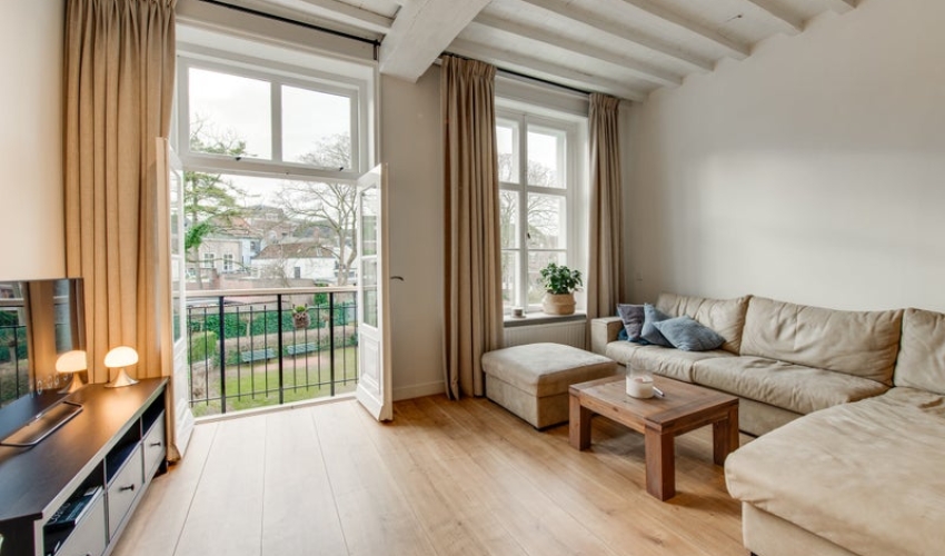 Royale woonkamer met prachtig zicht op de Merkxtuin, is afgewerkt met een laminaat vloer (brede delen, houtmotief), ...... Als je verder klikt kom je bij een nieuwe pagina met uitgebreide informatie over de huurwoning en met de directe contactgegevens van de beheerder