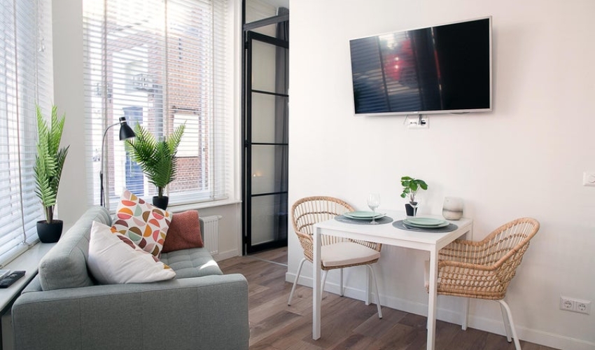 Heb je problemen met het vinden van een appartement? Blijf tot 3 maanden bij ons in een comfortabele en volledig gemeubileerde ruimte. Geniet van gemoedsrust en neem de tijd om zonder haast het perfecte nieuwe huis te vinden. Wij bieden verschillende studio’s aan voor tijdelijke verhuur (minimaal 1 maand en maximaal 4 maanden). De huurprijzen beginnen vanaf €1900 per maand inclusief nutsvoorzieningen. Neem contact met ons op voor meer informatie. Laat ons weten vanaf wanneer je in de accommoda...... Als je verder klikt kom je bij een nieuwe pagina met uitgebreide informatie over de huurwoning en met de directe contactgegevens van de beheerder