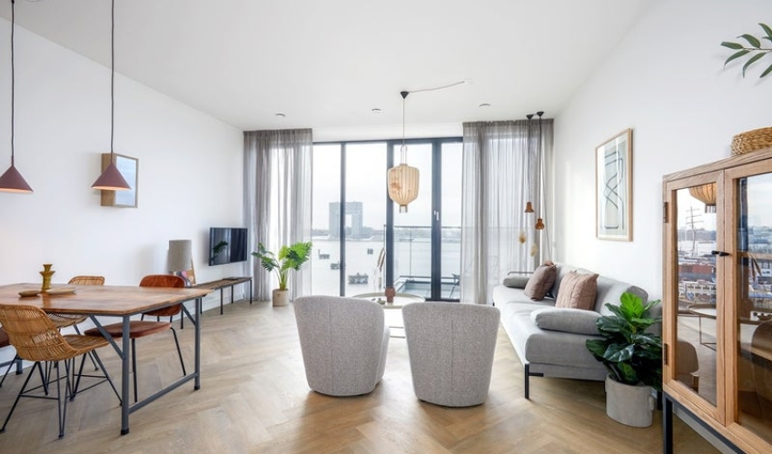 DIRECT BESCHIKBAAR - LUXE VOLLEDIG GEMEUBILEERD EEN-SLAAPKAMER APPARTEMENT MET UITZICHT OP T IJ Beschrijving appartement: Hoogwaardig gemeubileerd 2-kamer appartement van 58 m2 gelegen op de vijfde verdieping met raampartijen van boven naar beneden en balkon op het zuiden met uitzicht op t IJ. Het uitzicht over t IJ is adembenemend en een echt kenmerk van het appartement. U kijkt in de richting van het stadscentrum, Amsterdam Centraal Station, Houthavens en het pontje voor uw appartemen...... Als je verder klikt kom je bij een nieuwe pagina met uitgebreide informatie over de huurwoning en met de directe contactgegevens van de beheerder