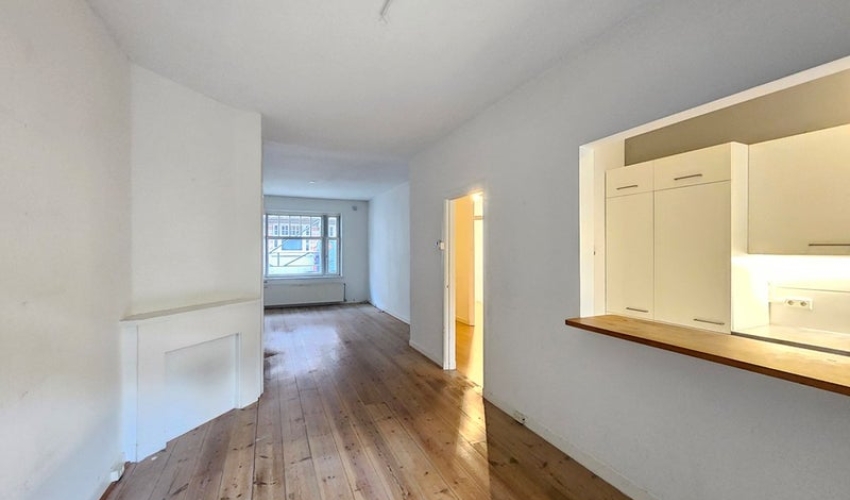 BEKIJK DE VIDEO OP ONZE WEBSITE Ongemeubileerd 2-slaapkamerappartement op de begane grond met een ruime tuin met schuur. Indeling: