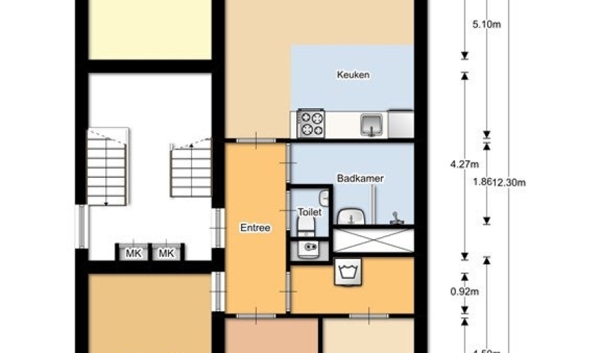Toegang via trap op de 2e verdieping. Gang met toegang tot apart toilet, badkamer met douche en aparte wasruimte. Toegang naar woonkamer met open keuken voorzien van koelkast met vriezer, vaa...... Als je verder klikt kom je bij een nieuwe pagina met uitgebreide informatie over de huurwoning en met de directe contactgegevens van de beheerder
