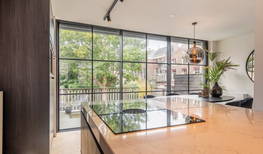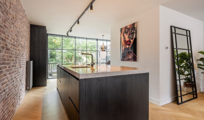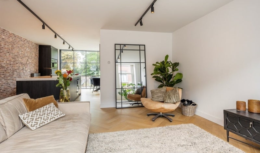 De 2e verdieping met luxe keuken, fraaie visgraat gelegde eiken houten vloer en een volledig open te schuiven pui met toe...... Als je verder klikt kom je bij een nieuwe pagina met uitgebreide informatie over de huurwoning en met de directe contactgegevens van de beheerder