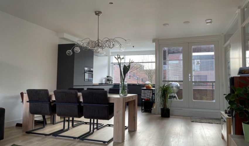- Eerste Verdieping Een brede, lichte woonkamer met een stijlvolle keuken voorzien van inductiekookplaat, stoomoven, vaatwasser en Quooker. Franse deuren leiden naar een op het zuiden geri...... Als je verder klikt kom je bij een nieuwe pagina met uitgebreide informatie over de huurwoning en met de directe contactgegevens van de beheerder